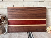 古くから高級家具や楽器の材料に使われている世界三大銘木の内のひとつブラックウォールナットにポプラと名前の通り紫色をした、珍しく個性的なパドックを使用したカッティングボードです。