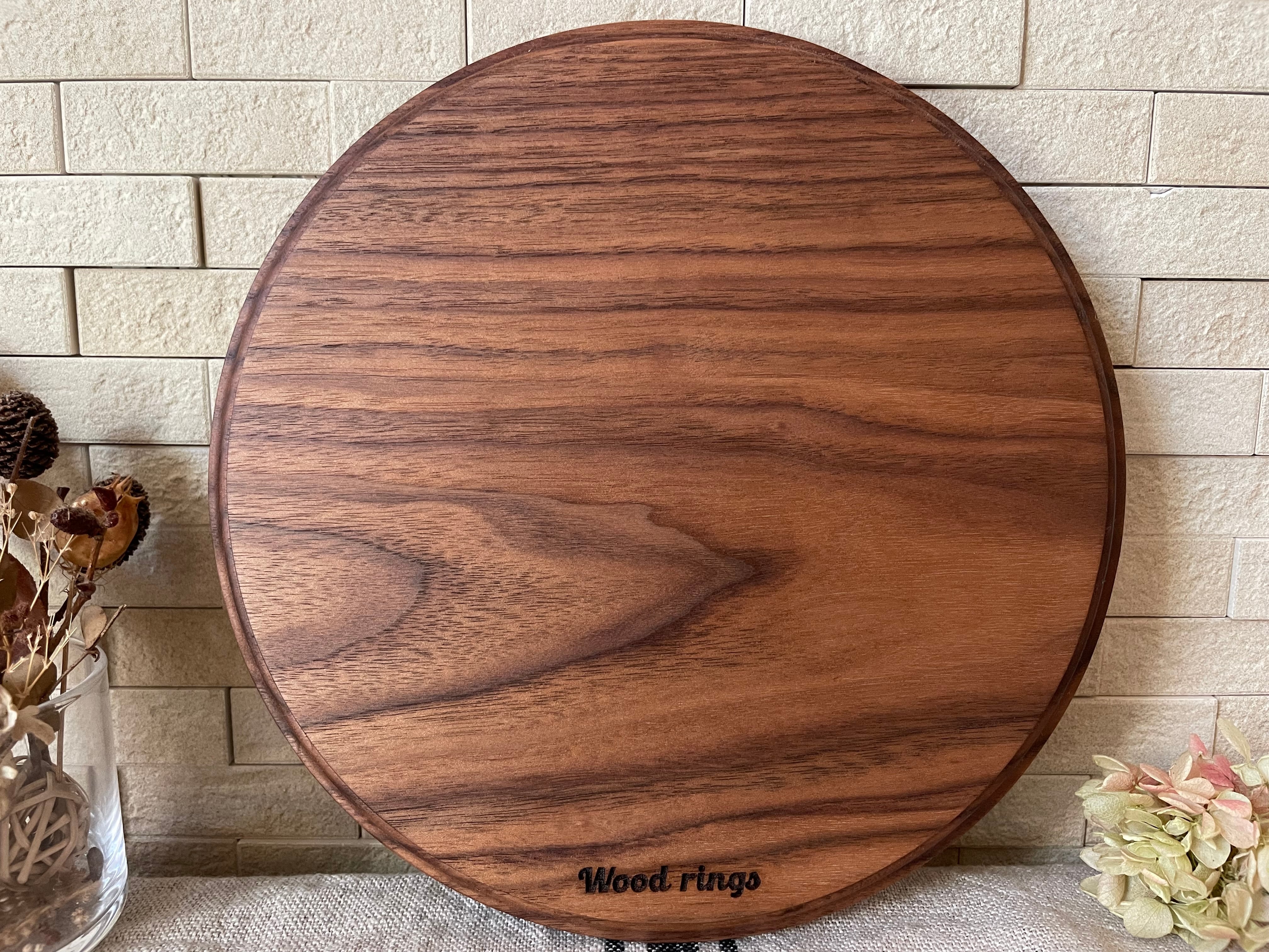 古くから高級家具や楽器の材料に使われている世界三大銘木の内のひとつブラックウォールナットを使用した丸いボードです。